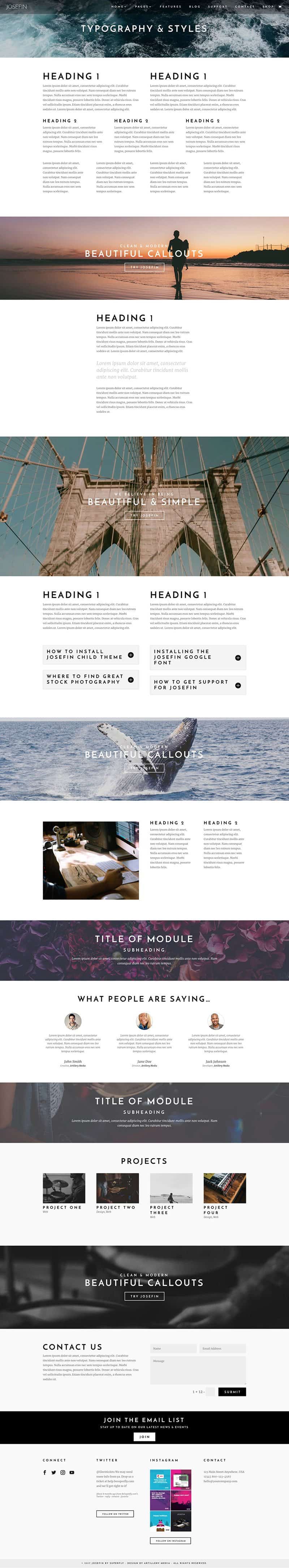 Finally, a clean & modern Divi Child Theme using great typography and imagery. Josefin is class all the way.